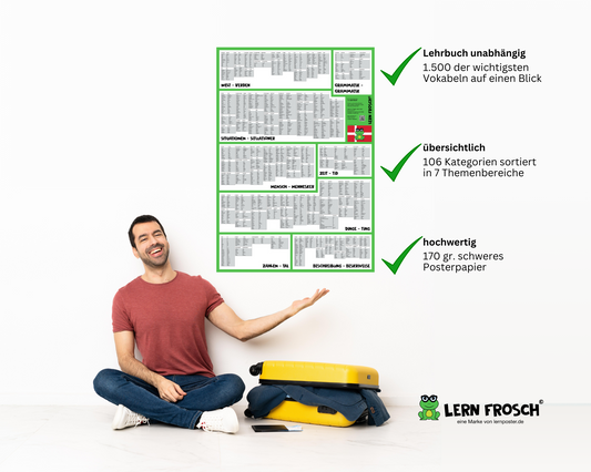 Lern Frosch® Englisch häufigsten Wortschatz lernen | Vokabelposter für Anfänger & Fortgeschrittene | 1.500+ Vokabeln lernen