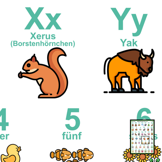 Lern Frosch® Alphabet und Zahlen 1 bis 20 Poster | Spielend Lernen für Kinder und Schulanfänger | Deutsch Lernen Sprachniveau A0-A1