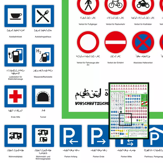 Lern Frosch© I Verkehrszeichen Poster für den Führerschein | Verkehrszeichen lernen, auffrischen & verstehen | Lernmaterial für Theorieprüfung & Straßenverkehr I XXL Format (70cm x 100cm) | mit arabischer Übersetzung