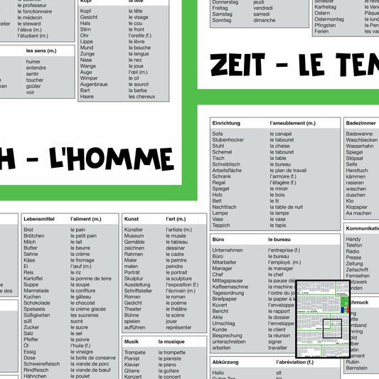 Lern Frosch® Französisch häufigsten Wortschatz lernen | Vokabelposter für Anfänger & Fortgeschrittene | 1.500+ Vokabeln lernen